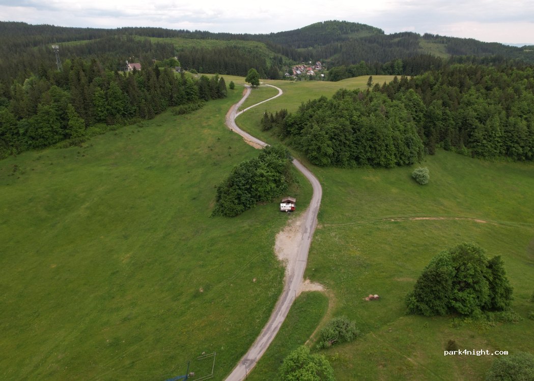 Place de parking avec belle vue sur Donovaly. Aucun problème pour s'y rendre avec n'importe quel type de voiture ou de camping-car. Aucun service, s'il vous plaît garder propre.