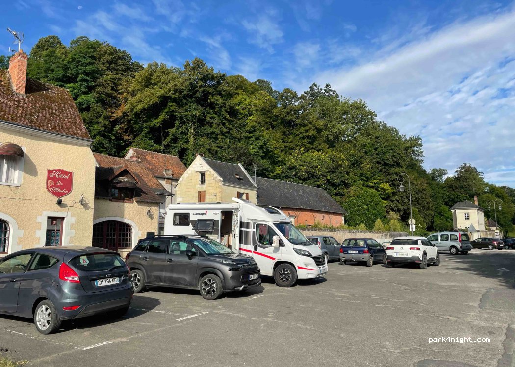 De l'autre côté le cher parking gratuit avec un peu plus d'espace que celui réservé aux camping-cars qui permet la jolie visite de Saint Aignan.