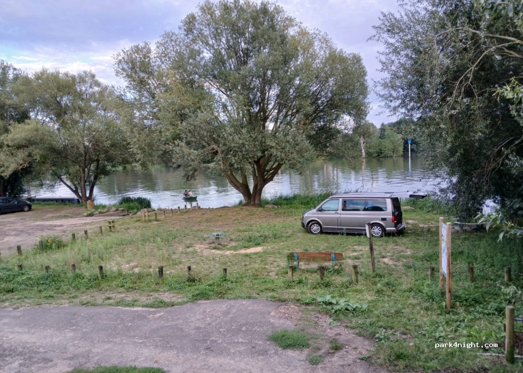 Petit parking sableux et herbeux au bord de Seine mais… on est venu nous demander de ne pas nous stationner sur le sable mais bien au fond dans l’herbe. C’est à dire à l’endroit bourré de moustiques. Soit disant pour les descentes de bateaux! S’il y en a un par jour, ce serait étonnant déjà. Bref! Pas très accueillant. Dommage. Nous sommes repartis ailleurs.
