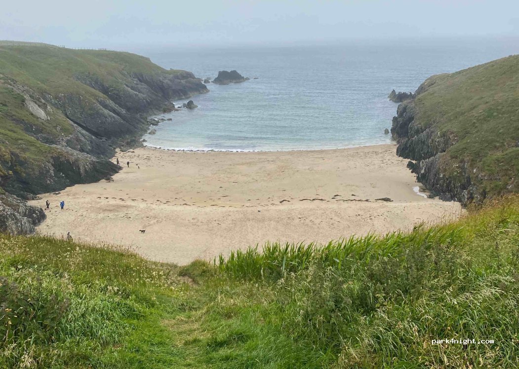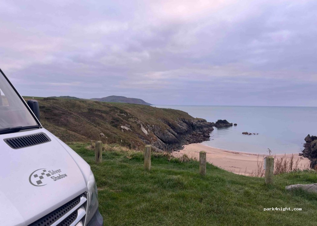 Champs d'agriculteurs surplombant une magnifique crique privée. Une vue imprenable sur le promontoire du sentier côtier. Peut se garer sur le bord afin d'avoir une vue sur la crique et le promontoire, avec un chemin qui y mène directement. Pas plat par endroits. Sanitaires, snack, eau potable et eaux usées. Ils avaient un bloc de construction de quelque chose en cours de construction qui ressemblait à un bloc de douche. Pas d'EHU. Le paiement s'effectue sur un horodateur qui vous est signalé. Longue route dans le parking en herbe mais encore une fois balisée pour vous.