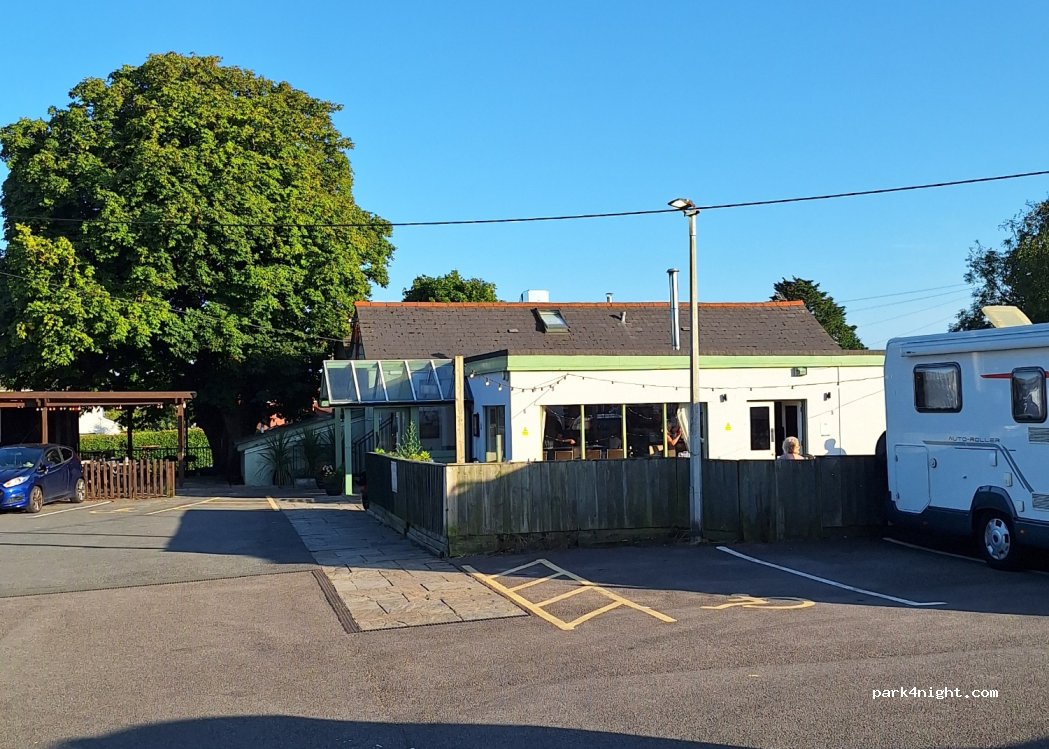Stayed for the night in the car park, if you ask in the pub and stay for food and drinks they don’t mind. Even charged a battery pack for me. Pub closes early dependant on trade. Quite noises as just off a main road and over looked by residential houses. If you tuck in the corner and take your rubbish away with you it’s a good little over nighter after a day exploring.
