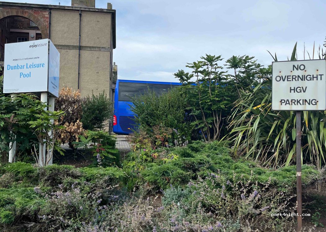 We parked here during the day and used the swimming pool. it has a flume and wave machine though that was out of use. Dunbar is a lovely town with a superstore and garden centre on the edge of town. Well worth a stop during the day or overnight.