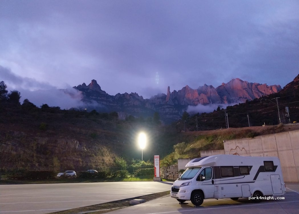 Safe, big, perfect for the hike or train to Montserrat. It is what it is - a parking spot not a camping spot. Bathrooms are open during the day, no other services. We spent one night there, and then left our van there for another two nights to go to Barcelona (you can even use the connection with the small train, if youre too lazy to walk the 15 min to train station).