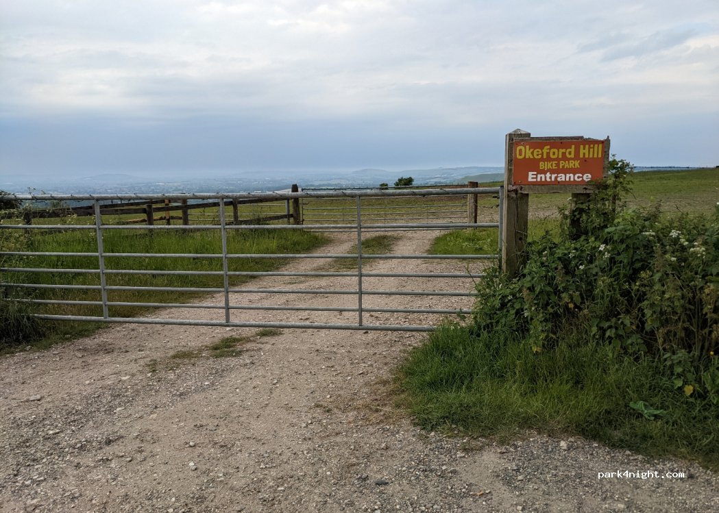 Deze locatie is niet geschikt voor campers breder dan 2 m. 50 meter verderop is er wel een mogelijkheid om te parkeren aan de ingang van Okeford Hill bike park. We hebben daar zonder problemen overnacht.