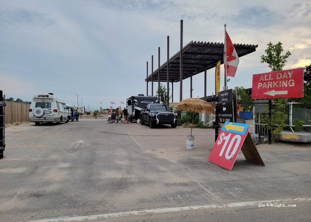 24h Parken am Wasaga Beach mit Blick (festgefahren) auf die Georgian Bay. $10/Tag $20/um die Nacht zu verbringen und vor Ort schlafen zu können