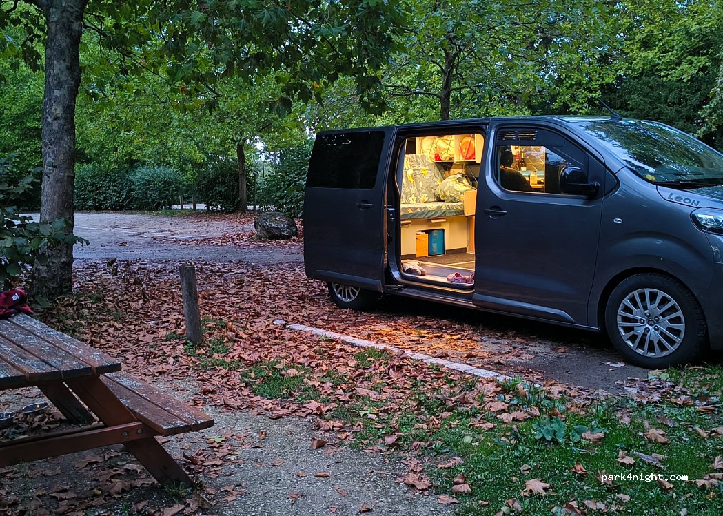 Was really beautiful surroundings, close to a small town where you can get amazing bread in the morning at a boulangerie. No service (toilet etc) on the parking spot but enough to park4night.