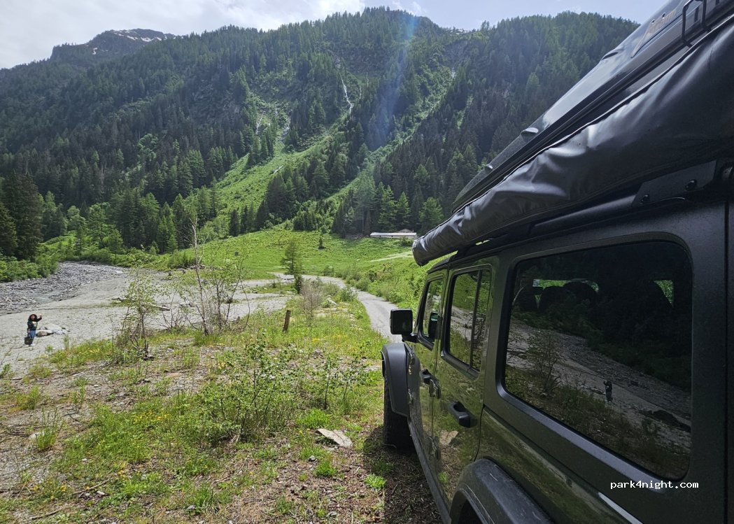 Emplacement possible juste avant le panneau d’interdiction ; presque plat, bruit du torrent, très peu de passages. Un bon plan…