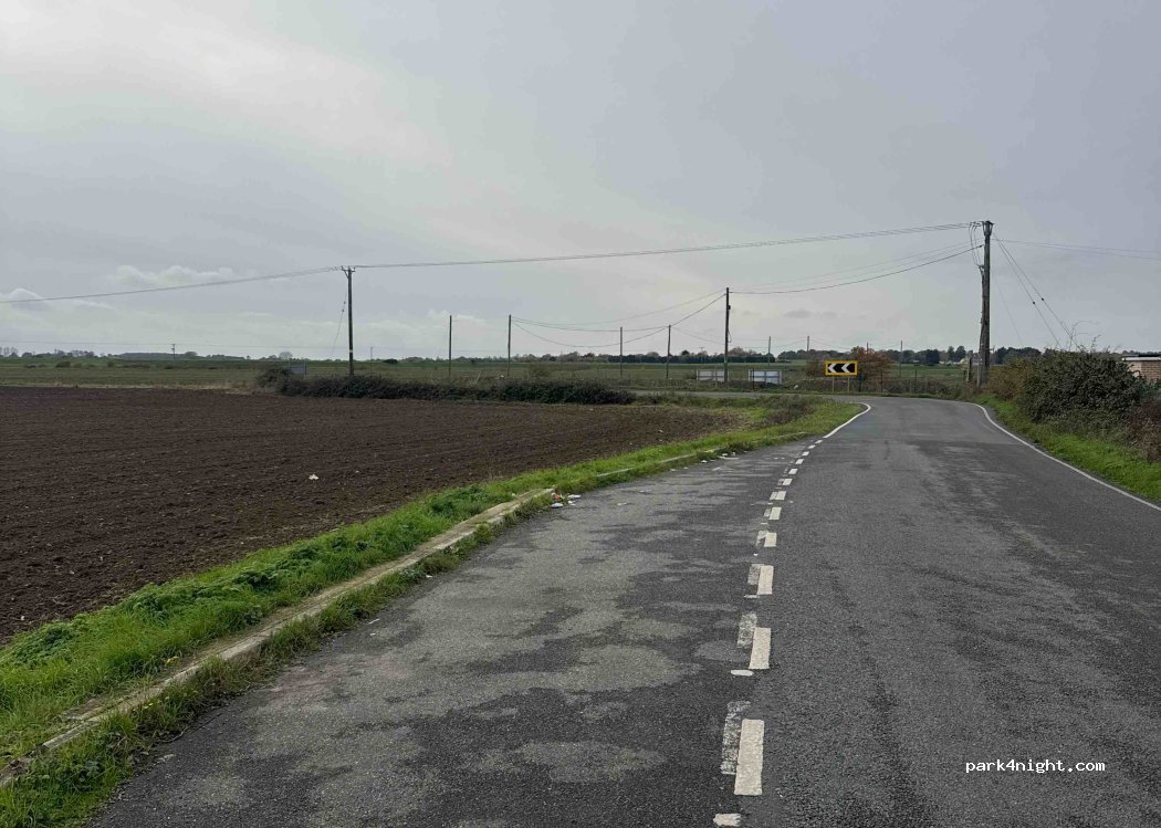 Lay-by near Wallasea island. Beautiful views of the fields. The Wallasea island car park shuts at 8 so we parked in the lay-by just before it, it is opposite a warehouse/industrial site but no noise or problems from it. No cars during the night but quite a lot of bikes, lorries and cars from around 8am onwards.