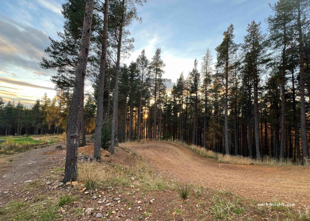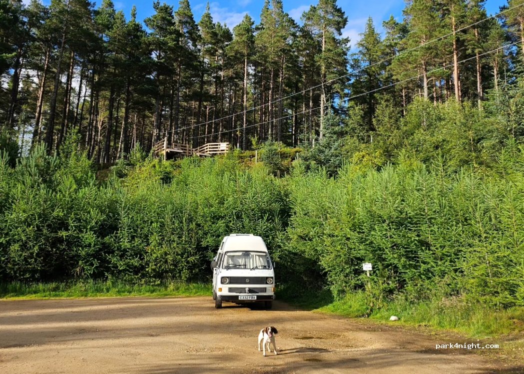 Excellent quite spot next at the glenlivit bike trails. Cafe open during the day serving great food, coffee abs cake, toilets open all night. £4 for the day and an extra £8 for overnight. Perfect peaceful low cost spot!
