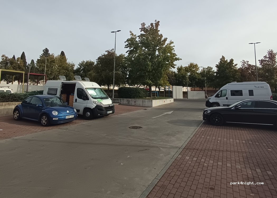 Stayed 2 nights in early May 2023. Quiet at night, great location, 5 mins walk to the old town. Large park 3 mins away including the cuidad de los niños for the kids. Car park does get full so please park considerately. Better for smaller vans, big vehicles may struggle to navigate corners within the marked parking area - note cars do not just park in the bays but all along the sides also!