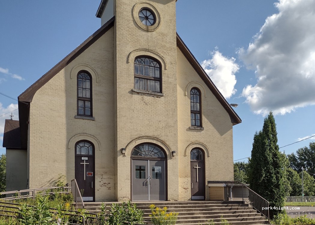 Au fond dans le stationnement de l'église nous y avons passé la nuit très tranquille