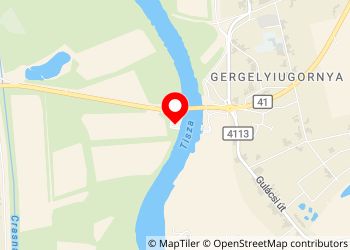 Parkplatz am Fluss Tisza auf mehreren Ebenen. Nach der Brücke liegt Ort Gergelyiugornya.