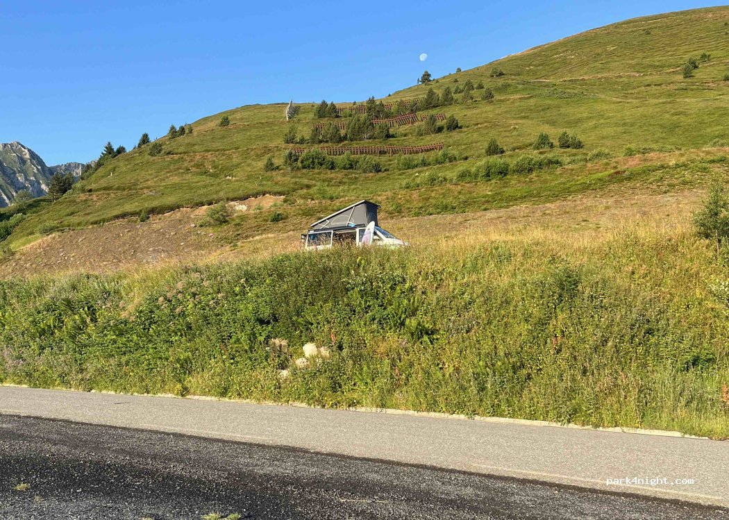 Emplacement idéale. La vue est magnifique. Réveille avec vu sur les montagnes et la verdure. Nous avons eu la chance d’être seul avec comme voisin les vaches et les moutons. Les différents parkings sont relativement plat et peut accueillir de nombreux véhicules aménagés.