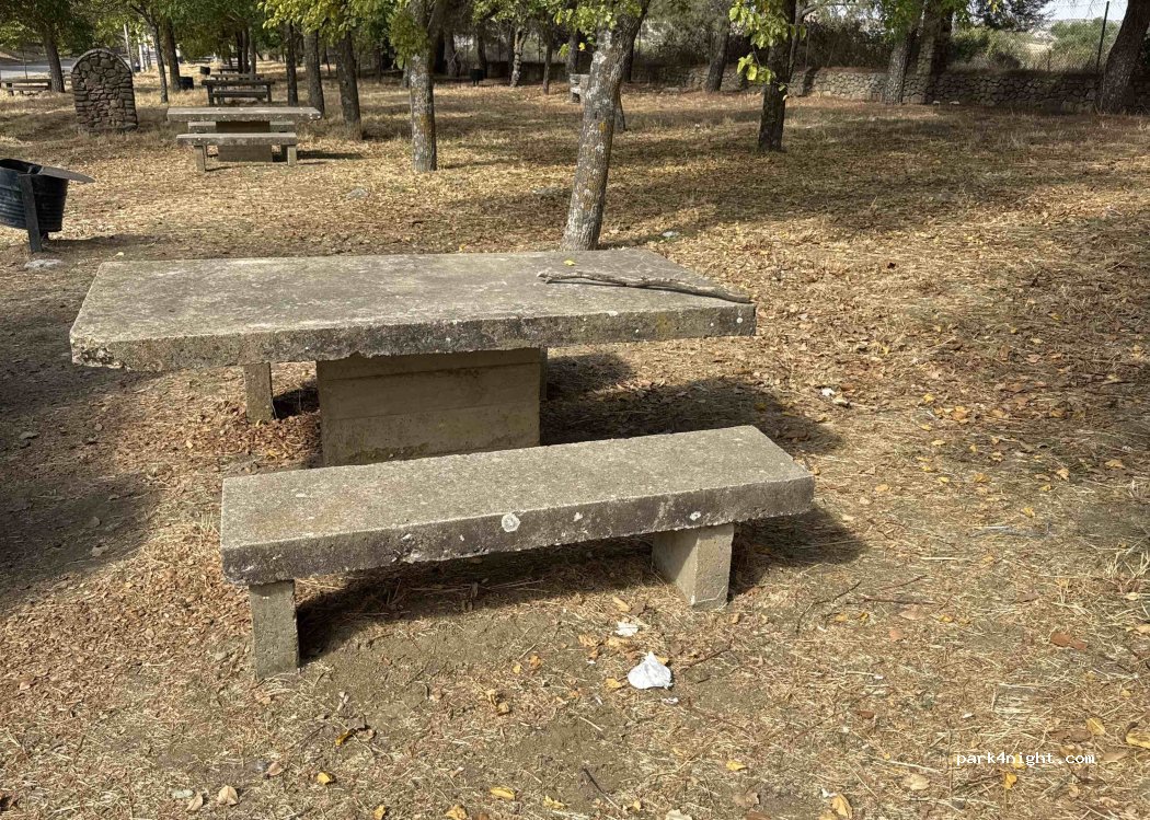 Sitio tranquilo para estacionar y almorzar. Mesas y sillas de piedra en la zona y también la posibilidad de barbacoa.
