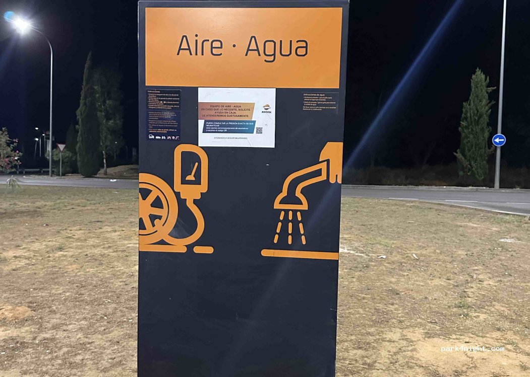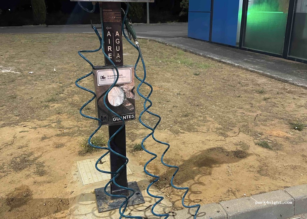 Area de servicio iluminada con aparmiento amplio para caravanas y camiones