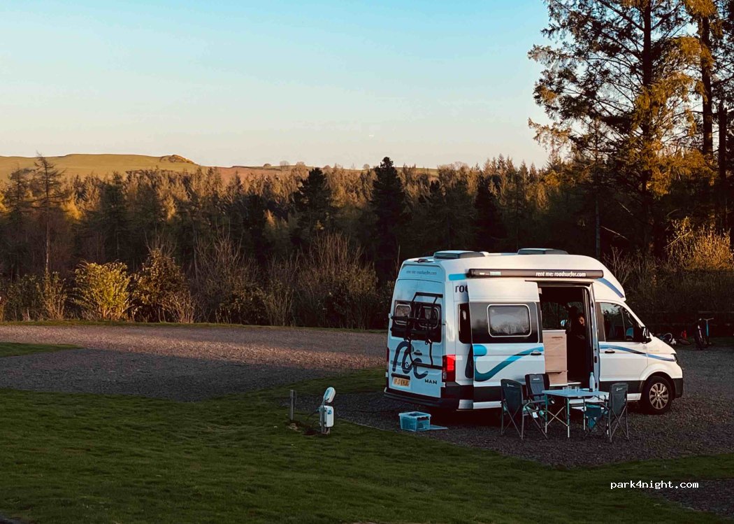Very nice site. Owned by local council and well maintained. Very friendly staff and nice visitors centre with cafe. Stayed here in November and quiet. Nice local walks as site is part of Bee Craig’s country park.