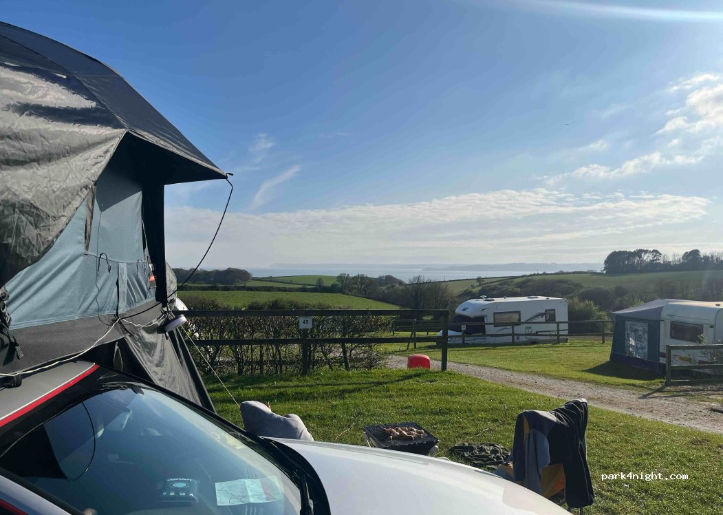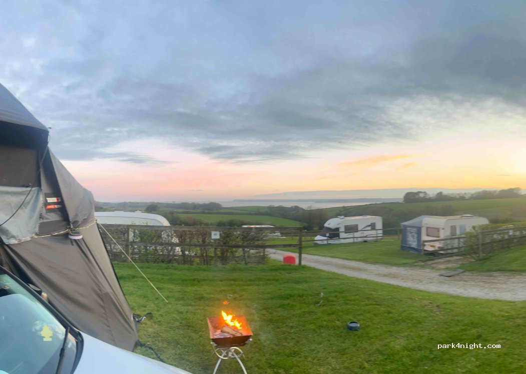We stayed here one night. Great views of the fields and if you're in a high up bay you get to see a sea view. Good facilities, clean toilets and showers, play area for kids, dog friendly. Plenty of areas for walks and dog walks, a short hike across fields and down a hill for a beach with a pub on it. The beach is dog friendly on the off season but no dogs in busy season. We will be back.