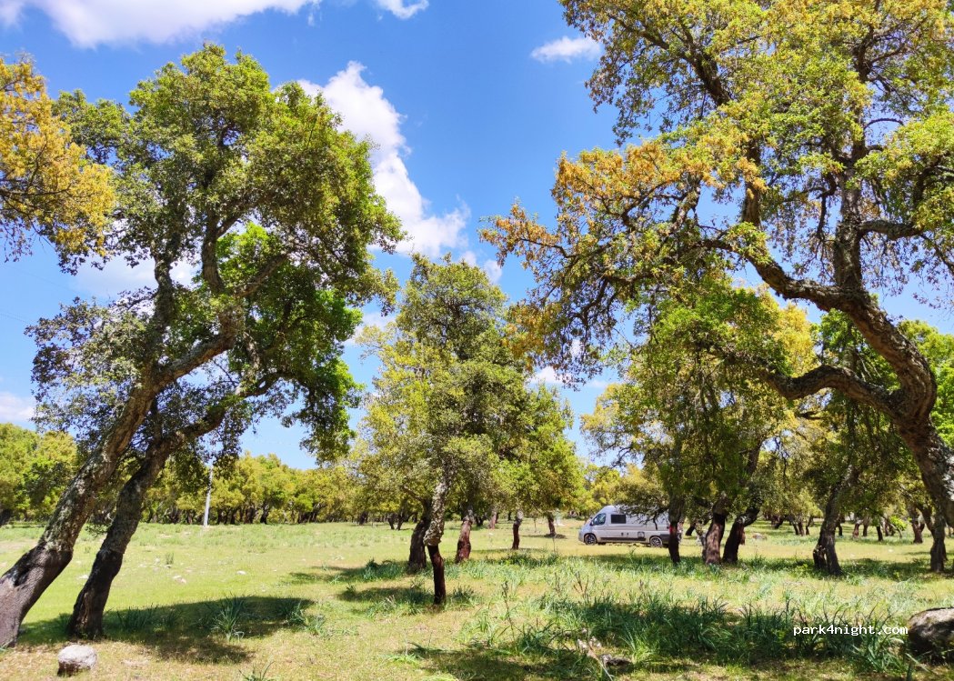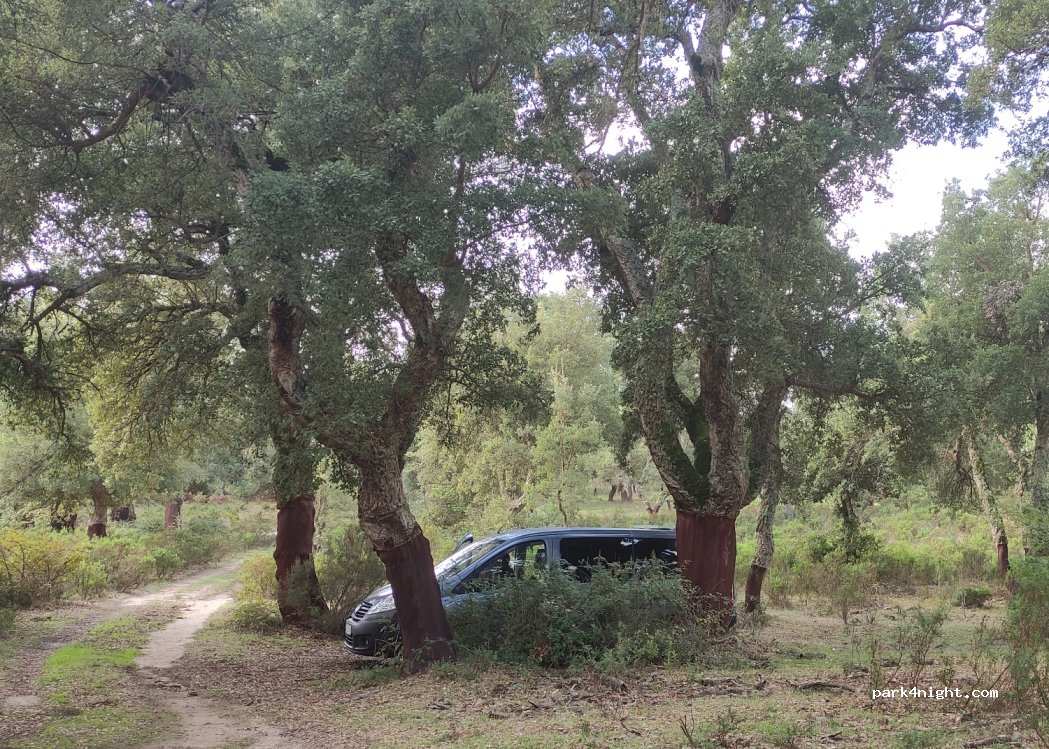 Piękne i ciche miejsce w lesie korkowym. Dojazd uważam za dobry, trochę wyboiscie, ale zwykłym busem spokojnie można dojechać. My staliśmy trochę poniżej miejsca zaznaczonego na mapie, dołączam zdjęcia.