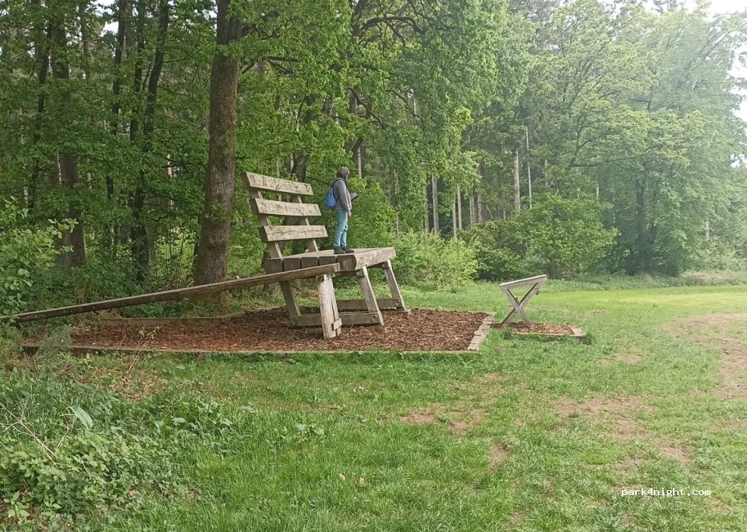 Schöner, ruhiger Parkplatz für ca. 12 PKW und Camper unter 3,5t und 7 Meter, wenn alle so parken, dass alle Platz haben und sich nicht quer stellen und den Wanderern den Platz wegnehmen, sonst könnte es bald vorbei sein,mit dem dulden der Camper. Die Anfahrt ist etwas schmal und verzweigt, aber machbar. Es gibt unten ein Schild Lkw nur für Anlieger frei. Nette Wichtel Deko im Wald von Kika Kindern