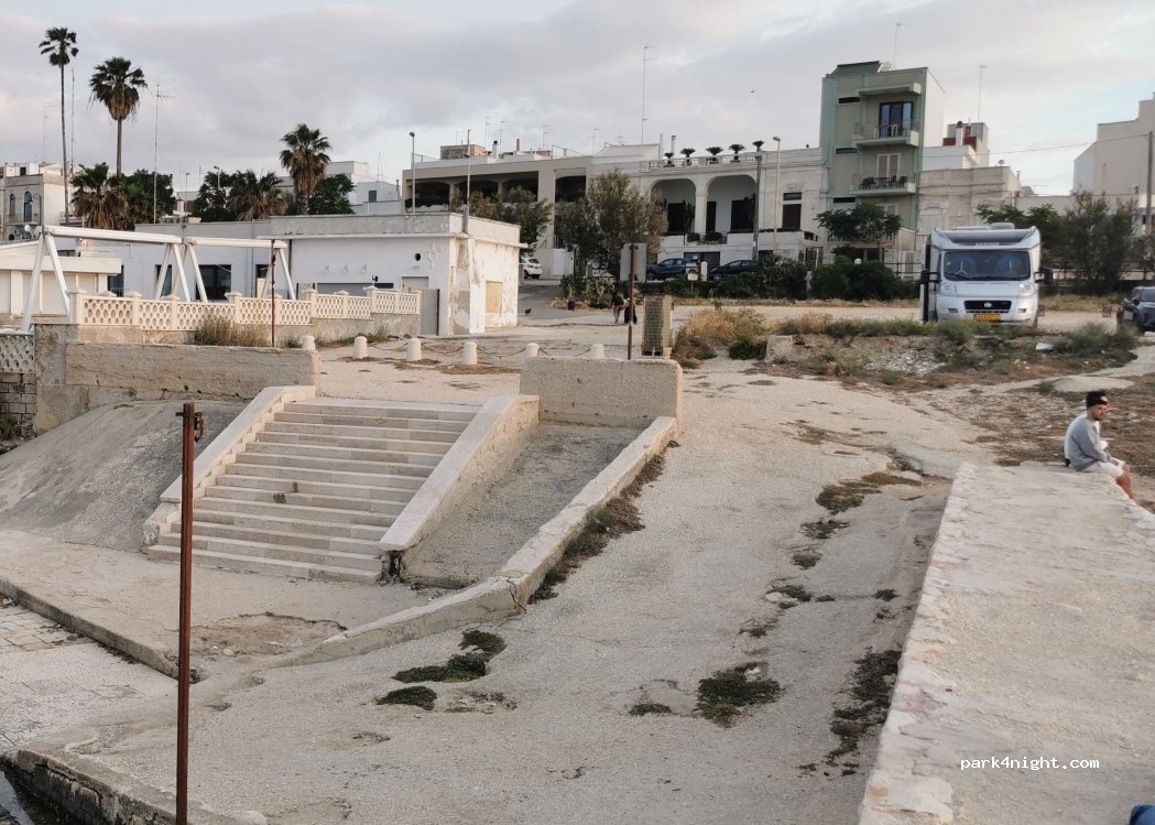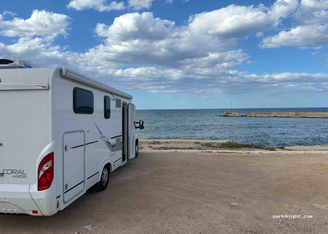 Parking au centre mais directement sur la mer. Gratuit. Le sympathique gardien du parking m'a donné un endroit agréable pour m'asseoir, même s'il était déjà assez plein à midi. Piazza avec restaurants et bars à seulement 100 mètres. Shopping dans le village à environ 5 minutes. Je cuisinais toujours le soir et partageais mes involtinis avec le chef. Endroit très agréable et sécuritaire.