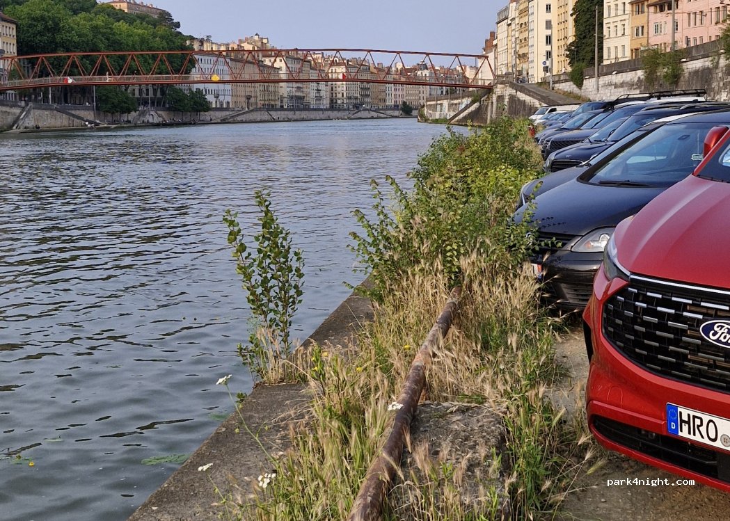 Très satisfait par cet emplacement situé au bord de la Saône. Parkings gratuits accessibles en descendant sur les berges(à droite). Nous y avons passé une bonne nuit bercés par le passage des péniches et de la vie lyonnaise. Situé à l'entrée du vieux Lyon et centre ville accessible à pied.