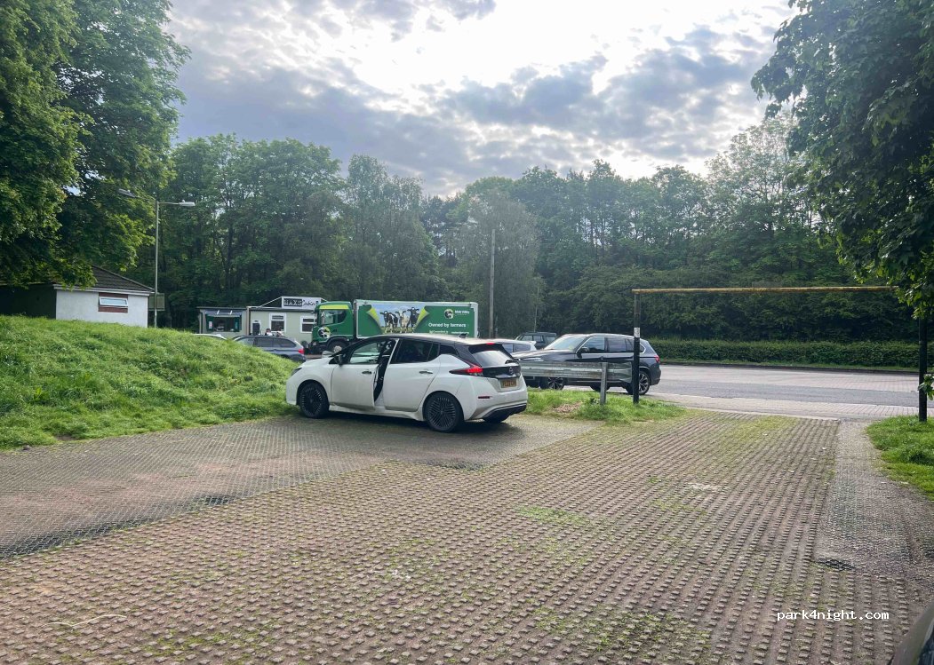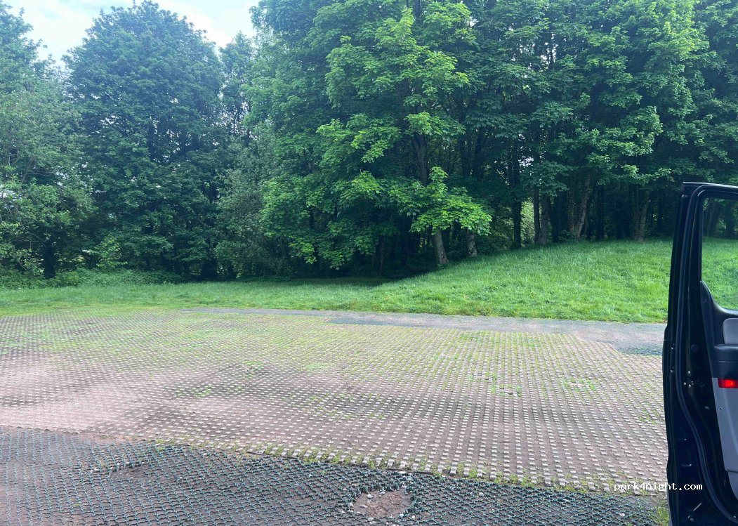 Nice little spot, some road noise from A30. Big highways agency sign that says no overnight parking but we saw a tiny tent set up in the grass! There’s a little cafe, toilets, benches and some woodland for little kids to explore.