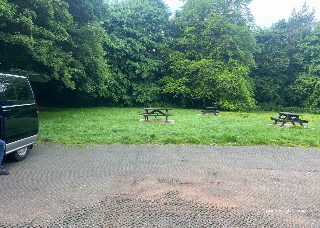 Off road parking, toilets, picnic tables and cafe. Maximum 2 hour stay.