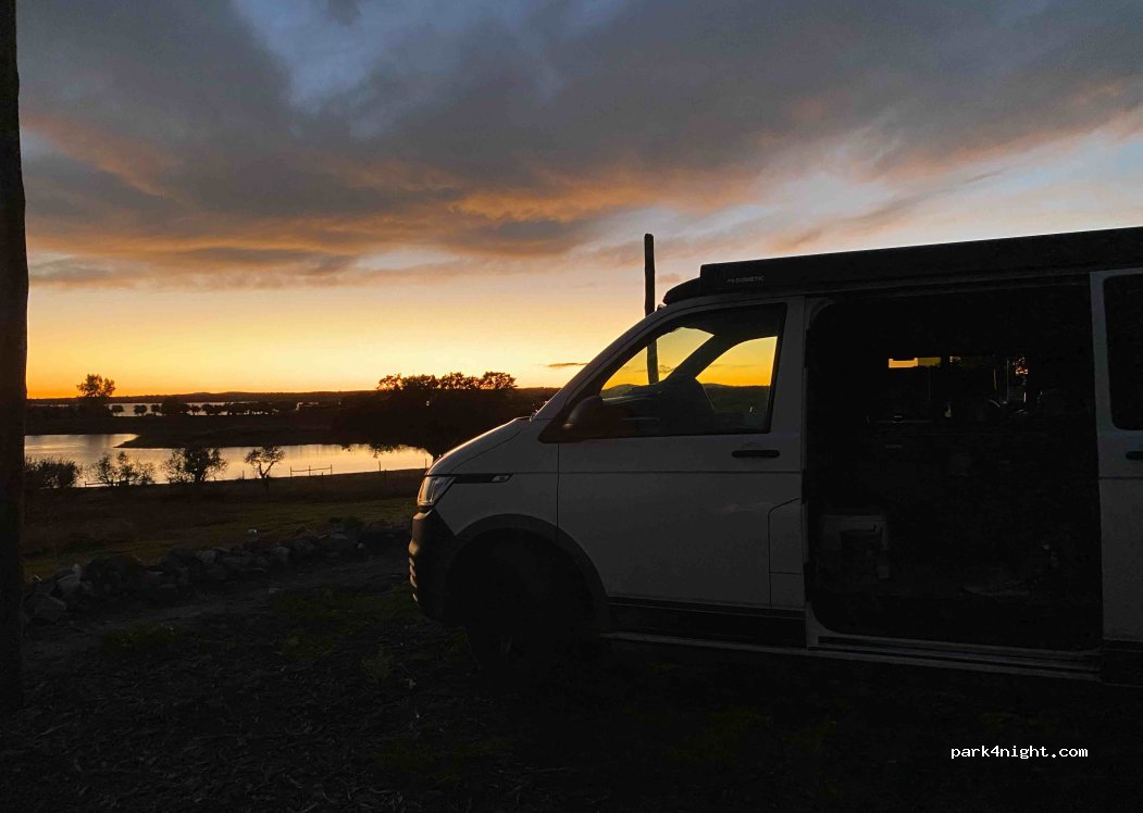 Beautiful place surrounded by nature, where you can park for the night right in front of the lake. We got a warm welcome from Stuart and José. They have a very friendly dog and chickens. The ground is fenced, so our dogs can run free. We made a bonfire and watched the sunset. At night the lack of electric light allows for remarkable stargazing. Highly recommend if you enjoy nature and calm