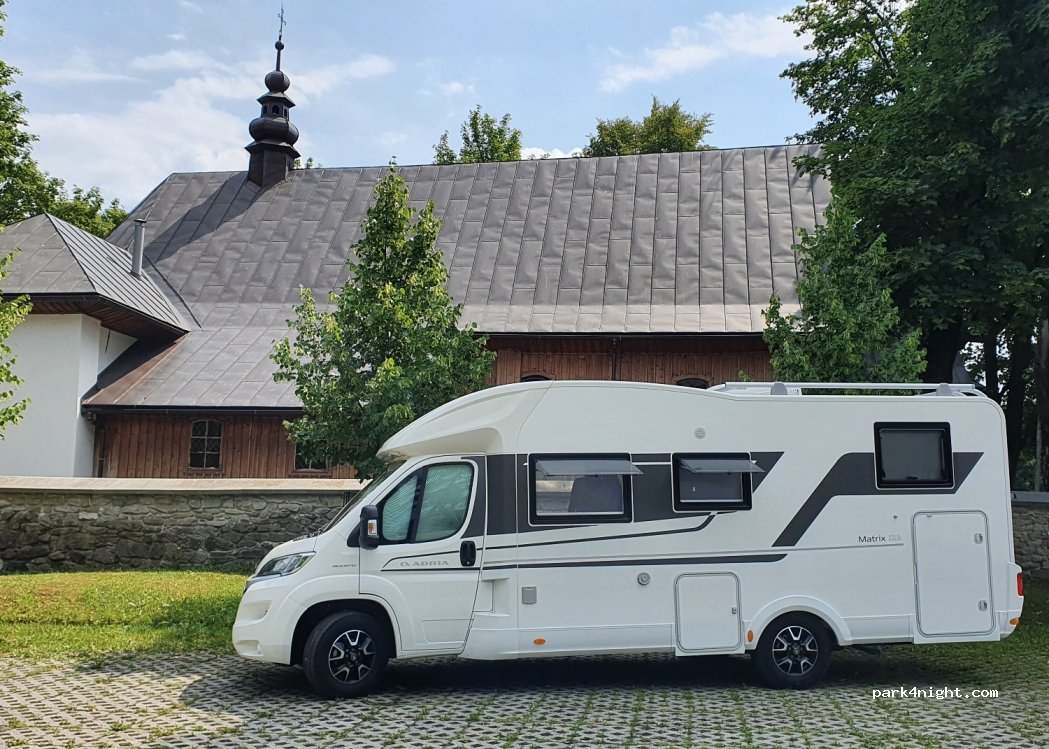 Parking near the church quiet, night without problem, mass at 6.30 am, flat and slabs.