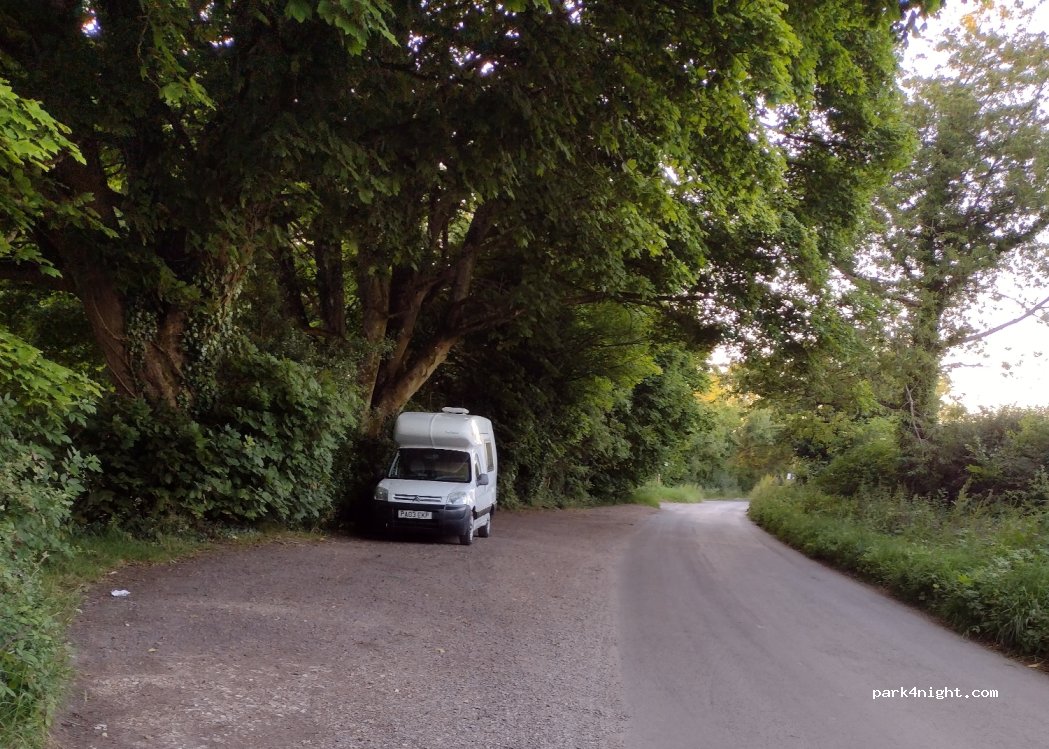 Good phone signal, and a peaceful night. Village pub is 200 meters away. Arrive late, leave early. In wet weather the overhanging trees will drip, drip, drip on your van, drives me nuts. Parking space is busy during the day, but empty at night.