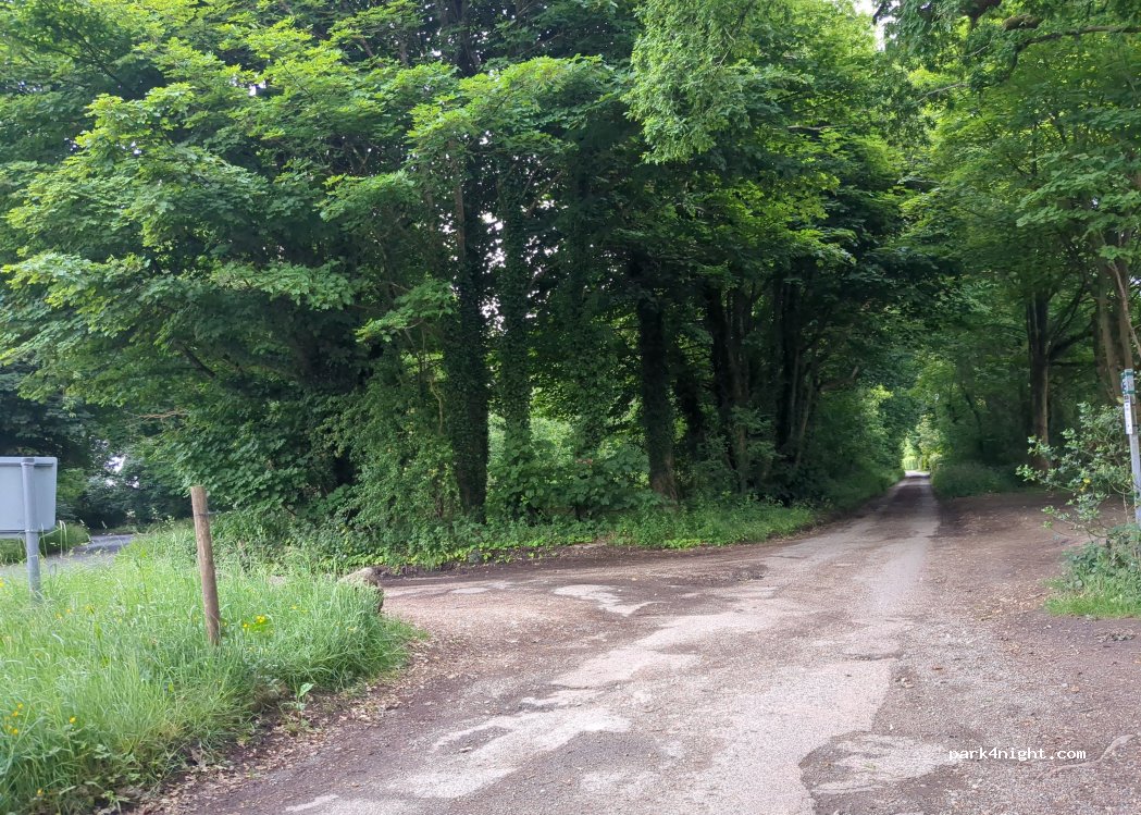 Long gravel lay-by (about 45 meters) at side of road. Slightly sloping with some flat parts. Be aware of some low overhead branches. Very little passing traffic and very quiet at night. No restrictions, no services.
