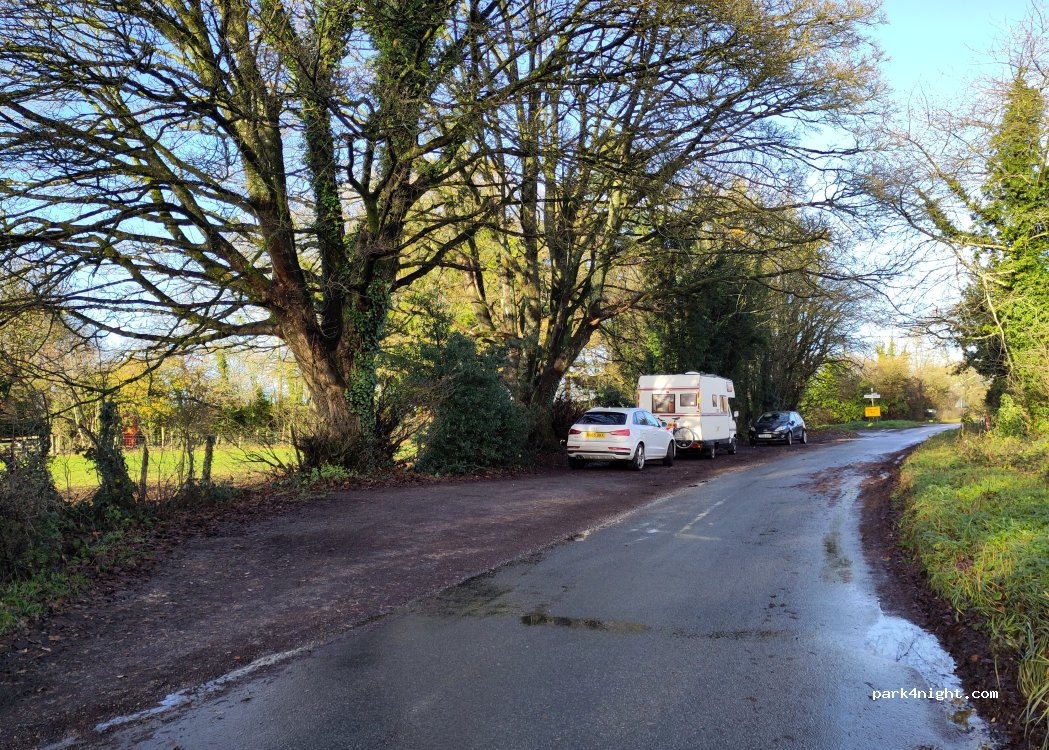 Basic wide gravel layby on narrow road. Lots of horse boxes passed early evening due to local event , but very quiet at night.