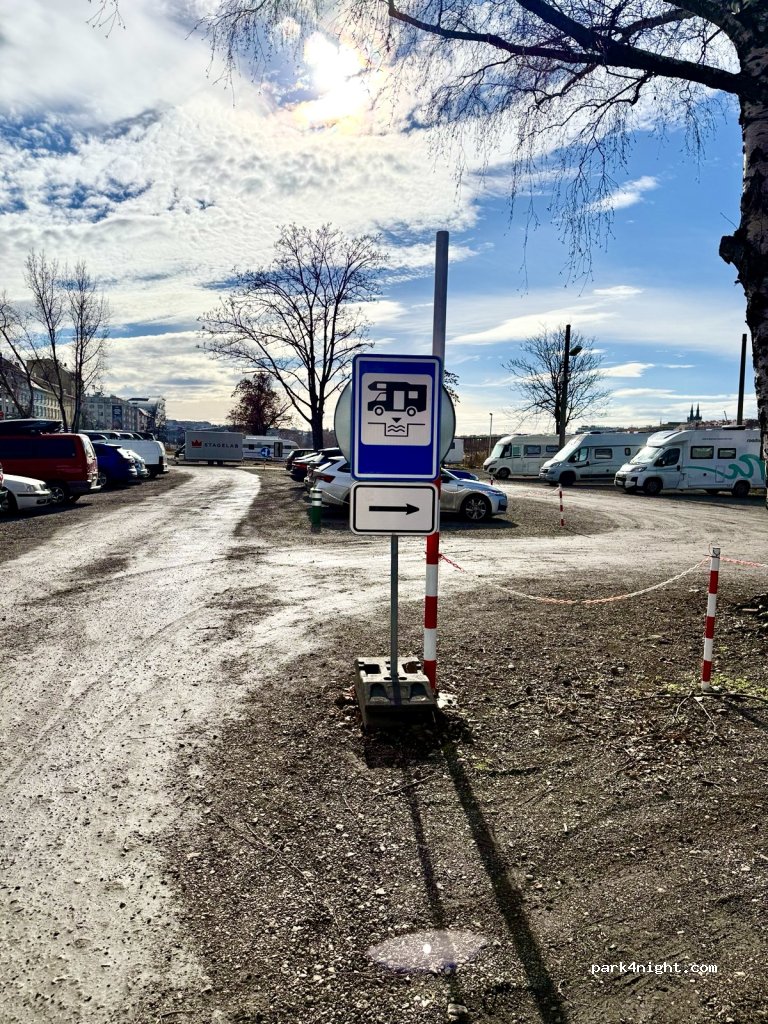 Great parking with everything you need, except toilets, but wc discharge, clean and drinking water and grey water discharge. If you have only the European electricity plug, go till the end of the park to find the right connection, otherwise you need a Czech adaptor. Close to city centre taking tram 14 or Red+yellow lines Metro, whose take you to Mustek station in the heart of the city.