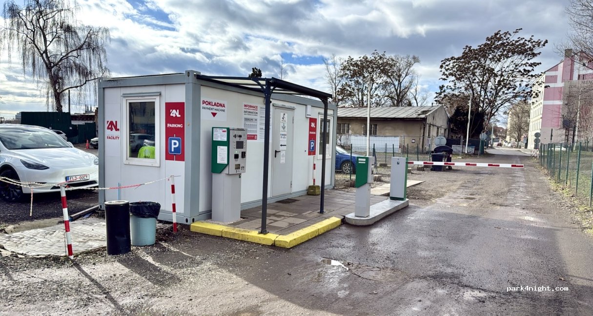 An ideal place to have your camper serviced. Entrance through the barrier - you need to collect a ticket. The cost of the service is the cost resulting from the time you spend in the parking lot (1 hour = CZK 30)