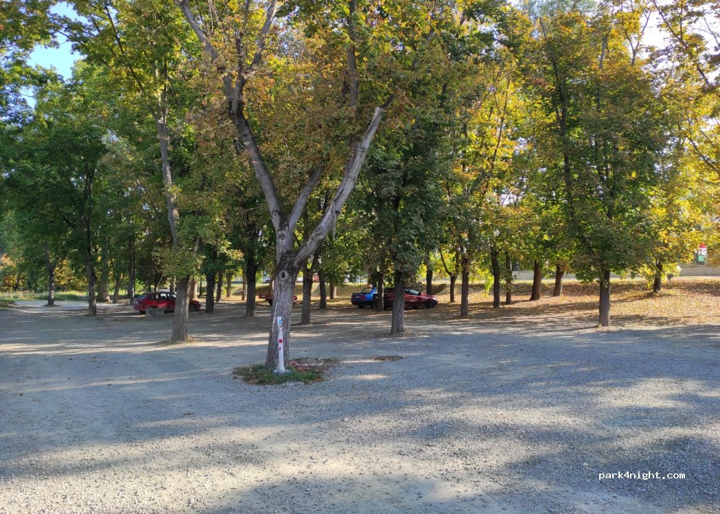 Ağaçlık alan ücretsiz. Zemin toprak. Onun hemen yakınında gündüzleri otobüsler için ayrılmış alan da var. Ancak buraya akşam saatlerinde park edebilirsiniz. Buranın zemini asfalt. Sessiz, sakın ve gezmek için iyi bir konum.