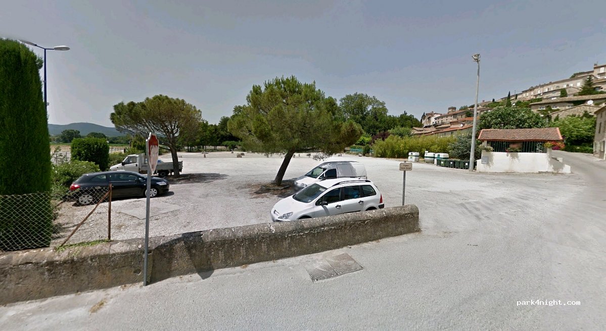Parking de covoiturage, aire de jeux et pelouse. Proche du bourg d'Allex, robinet d'eau potable mais pas d'électricité.