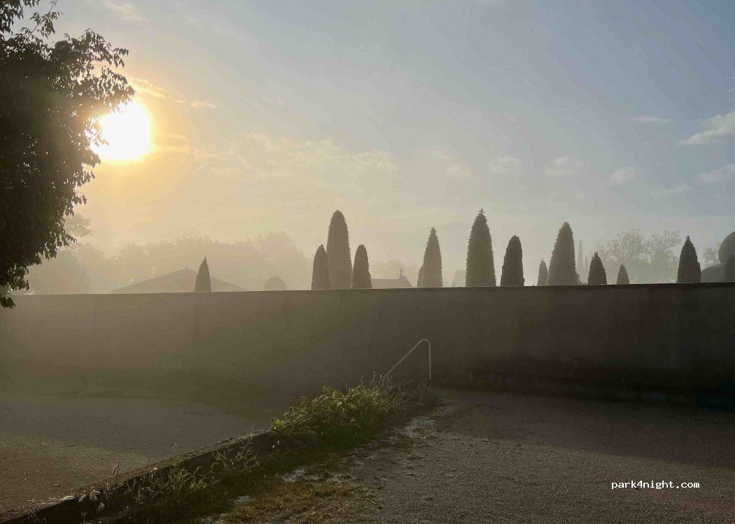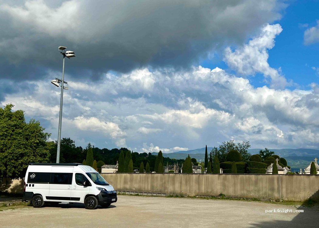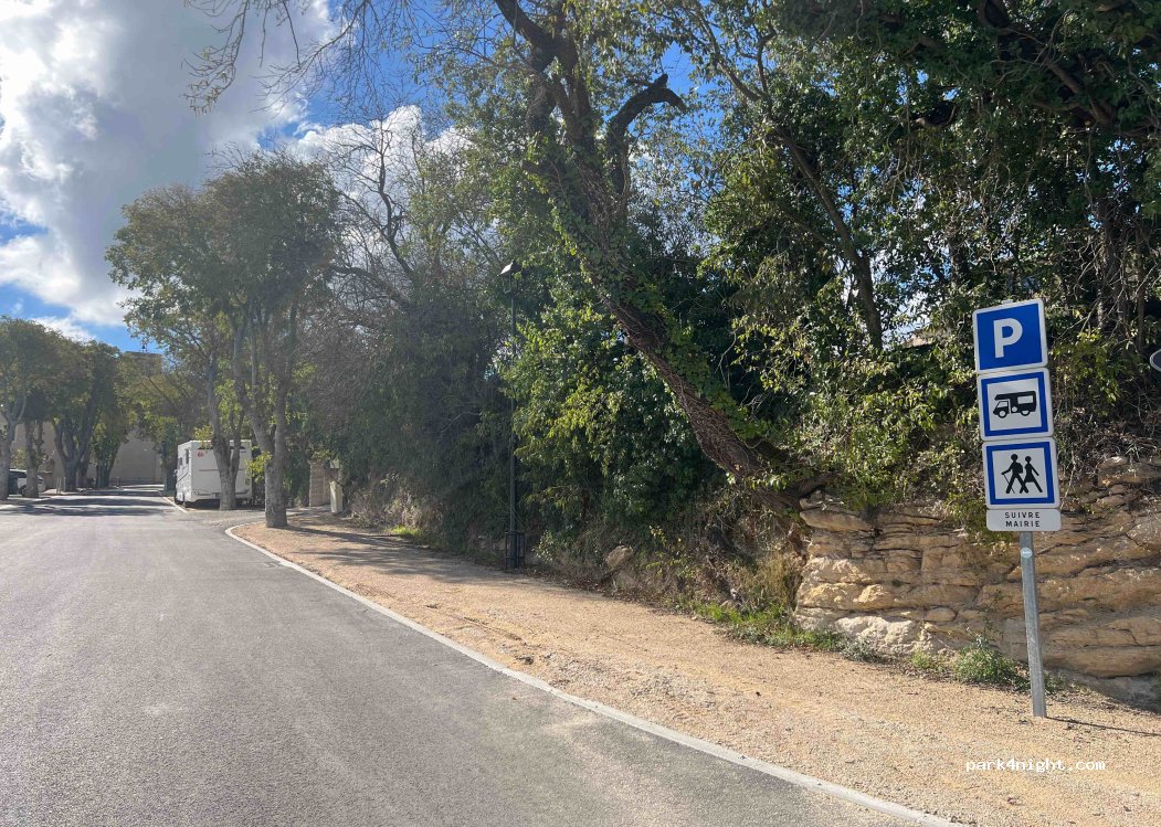 Nuit du 8/9 septembre parking à l’entrée du village, plat avec wc et eau parfait pour visiter et passer une nuit . Merci à la municipalité de nous mettre à disposition cet endroit. Il faut mieux arriver en fin de journée car les joueurs de pétanque stationnent à cet endroit .