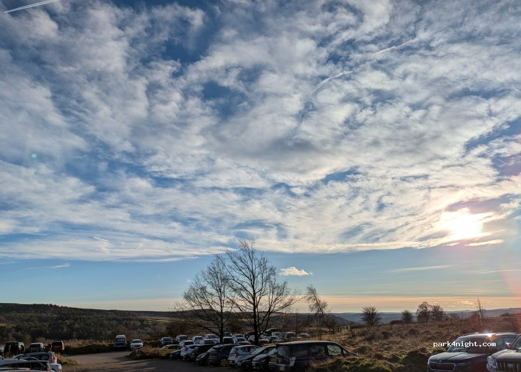 Good car park for day parking Start of several hikes, flat and surfaced bays. Would make for a good breakfast/lunch/dinner spot (overnight camping not allowed). Pay and display between 0900 and 1800, fees: 1 hour - £1.50, 2 hours - £2.50, 4 hours - £4, All day - £4.50. Machine takes card. When we were there there was also a coffee stall which is an added bonus. Car park gets very busy.