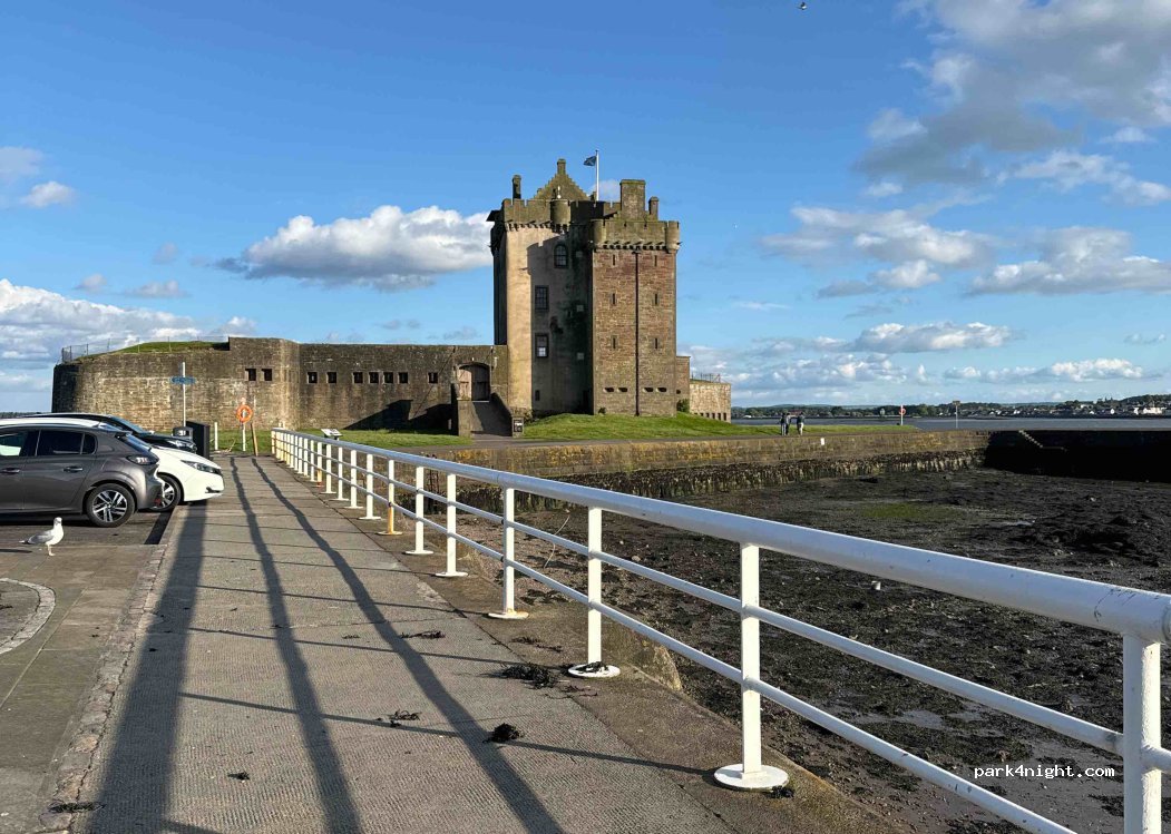 fantastic free camping spot in Broughty Ferry, just 50 meters from the castle and right by the harbour. We arrived around 9:30 PM and found plenty of parking available The location is perfect—only a few minutes' walk to town and the nearest pubs. the spot is lovely. We were fortunate to have sunny weather, though it was a bit windy. Overall, a great free camping location!