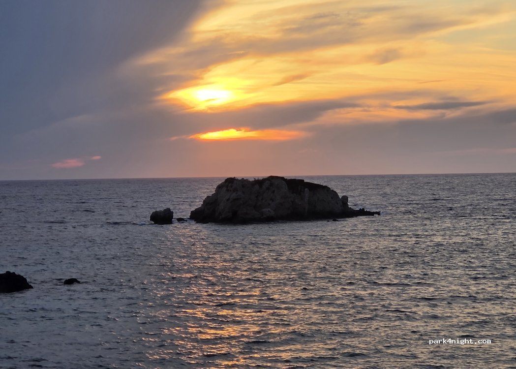 Riesengroßer Parkplatz. Die Taverne ist ca. 200m entfernt, so dass es sehr ruhig ist. Ein wunderschöner Strandabschnitt. Toller Blick von der Tavernen Terasse auf das Meer. Auf Nachfrage ob ich auf dem Parkplatz übernachten darf, gab es ein freundliches Ja.