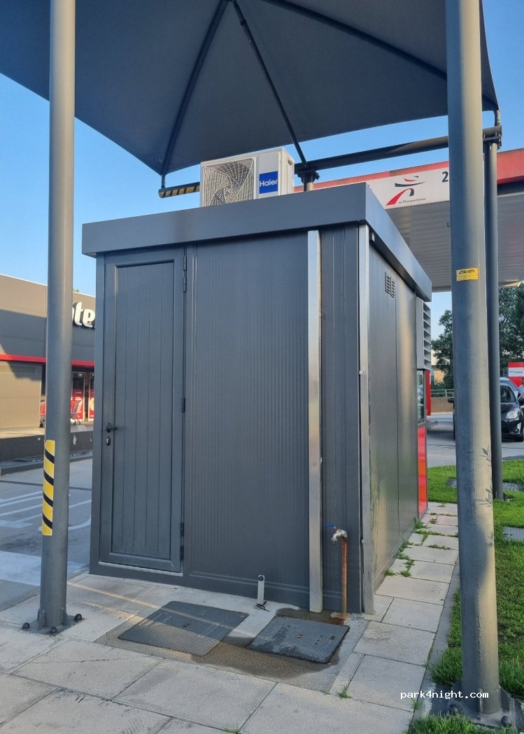 Parking by Intermarché on ALPENDORADA small town. Laundry, shop, and gas station with LPG. And a drinking water threaded tap at the petrol pump pay booth.