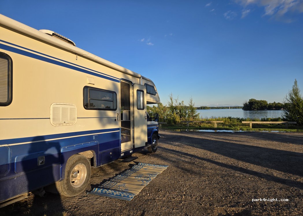 Pour nous arrivé vers 18:00hrs, encore de la place au bout du stationnement, très belle vue sur le fleuve, la police est passé faire un tour vers 19:30hrs, endroit propre, a la tombé de la nuit le plan d'eau est sublime, seul bémol le bruit de la route surtout en soirée, la nuit c'est tres calme mais bon, ca ne nous a pas empêcher de passer une excellente nuit.