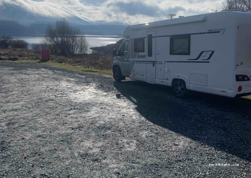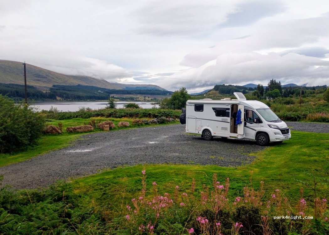 Brill place to stay. spoke to shop owner and can stay anywhere round the loch no one moves you on. litter bins there. toilets in the cafe /shop. lovely views and very peaceful. no traffic at night. would recommend.