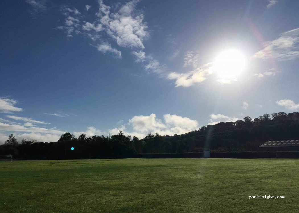 Parkplatz im Stadtzentrum mit Spielfeld, Spielplatz und angrenzendem Llandovery Castle. Frei unter der Woche 10-16 Uhr. Schild steht „Keine Übernachtungen“. Im Westen finden sich größere Räume.