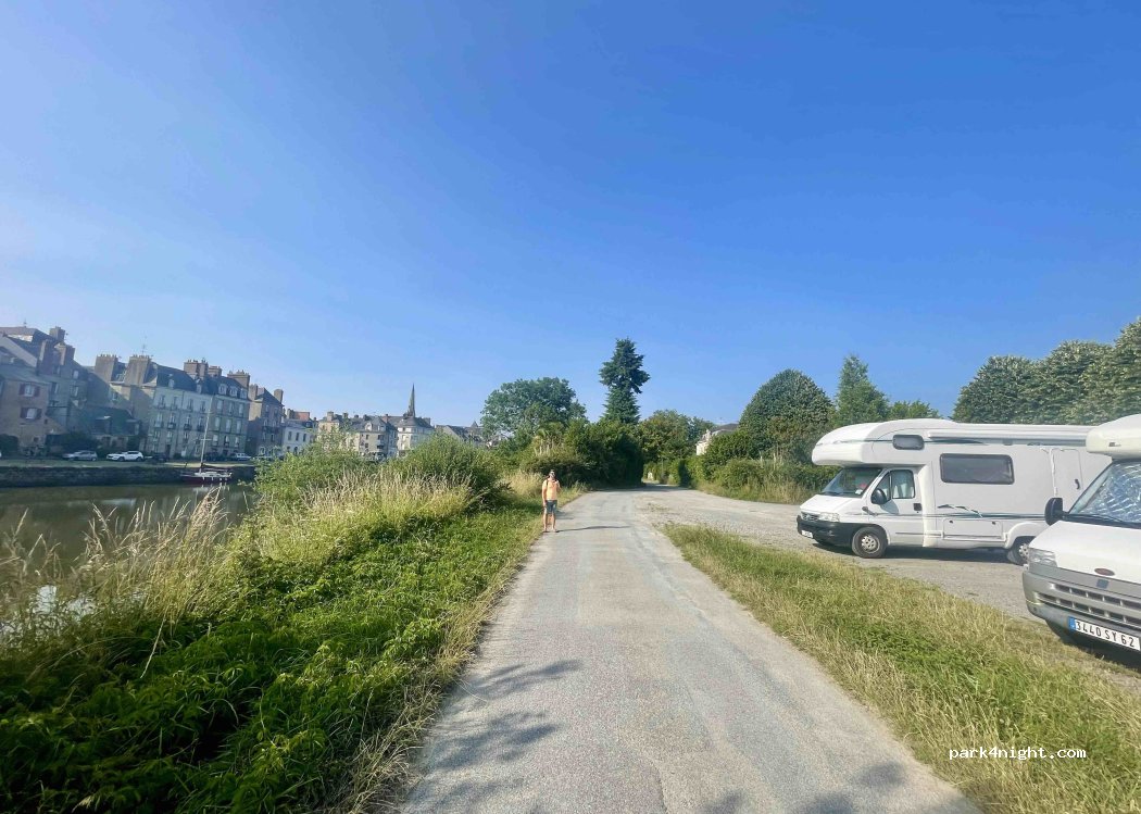Bonjour à tous, que dire c'est plutôt un parking qu'une aire. Être autonome, vous êtes stationnés devant le fleuve La Vilaine et cet endroit a le mérite d'exister car il n'y a rien d'autre. A deux pas du centre-ville et rue commerçante très agréable. Nuit à peu près calme. Merci à la municipalité pour cet endroit.