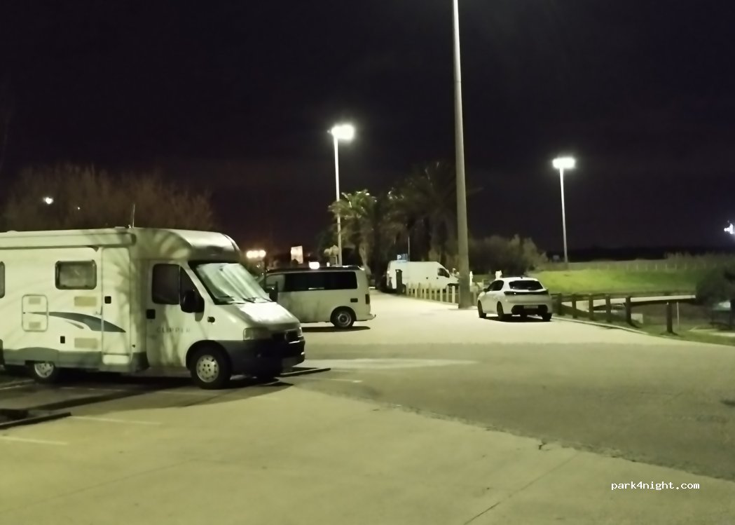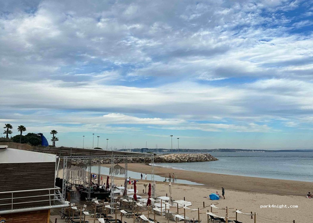 Super spot, tranquille, safe. Pour des van et des fourgons (pas de camping car). Il y a du monde à passer régulièrement ainsi que des voitures de police. En cette saison, possibilité de rester la journée pour un euro. pratique pour visiter Lisbonne (20 min en train). Nous avons passé 2 jours là. Se garer plutôt sur le côté est du parking pour plus de tranquillité.