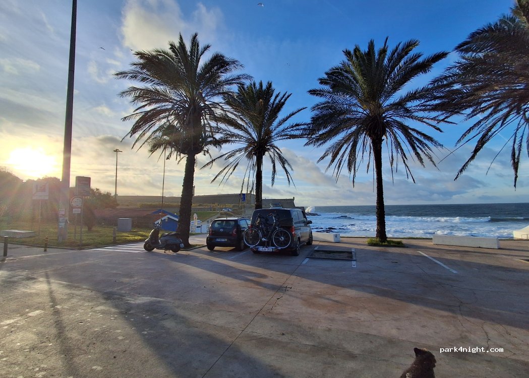 Parking de pago de muy bajo coste. Buen estacionamiento pase 2. Junto al bonito paseo Marítimo. Al fondo a la izquierda apenas escuchas ruido salvo el mar. Espectaculares atardecer y paseos por la playa de Carcavelos junto al fuerte La Torre. Mi playa preferida cerca de Lisboa. Es temporada invierno y hay menos aglomeración. Noches tranquilas. Bonita playa con muchos surfistas.
