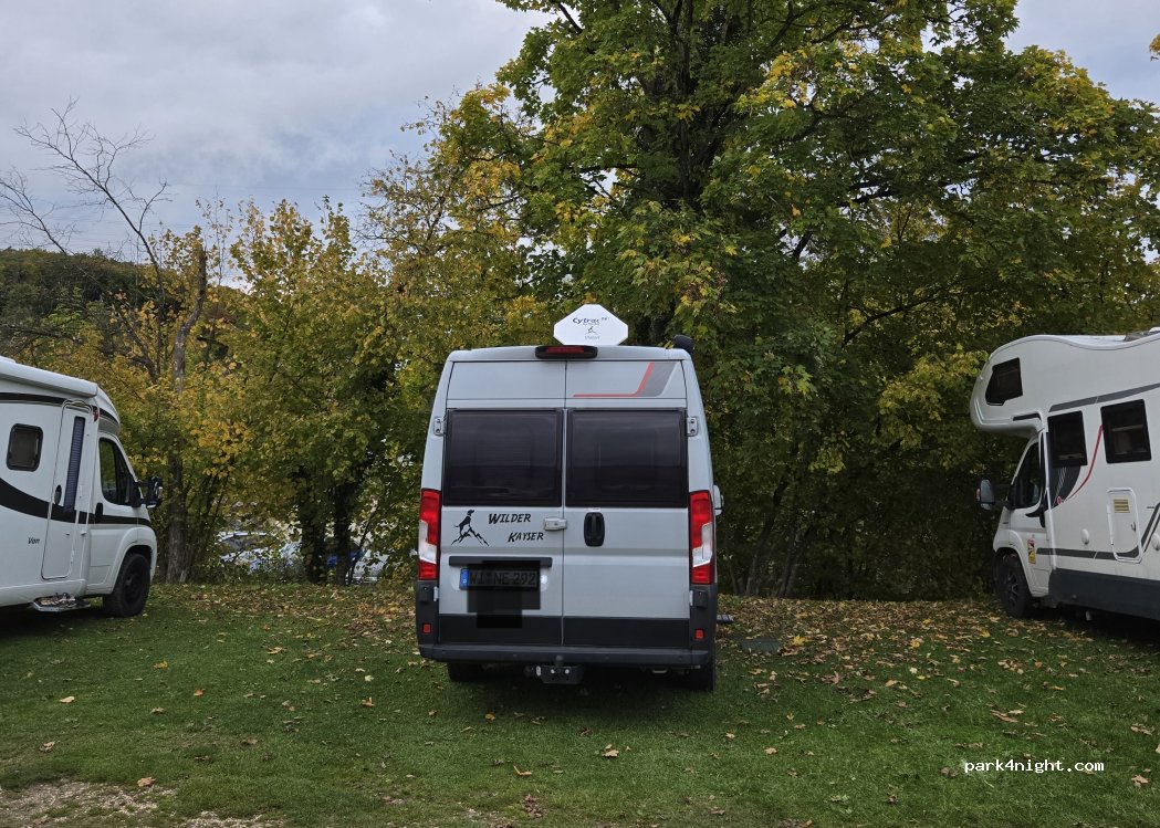 Small unpaved and paved parking space for 6 mobile homes. If the vehicles are well parked, 10-12 mobile homes can fit on it. Electricity connection is available for 6 mobile homes. The parking space is on the Lochmühle site. A restaurant, petting zoo, pony rides, 2 playgrounds, quad biking, tractor driving and much more. You definitely need drive-on wedges. 8.60m length is not a problem.