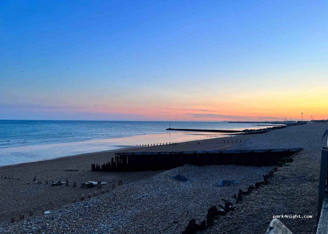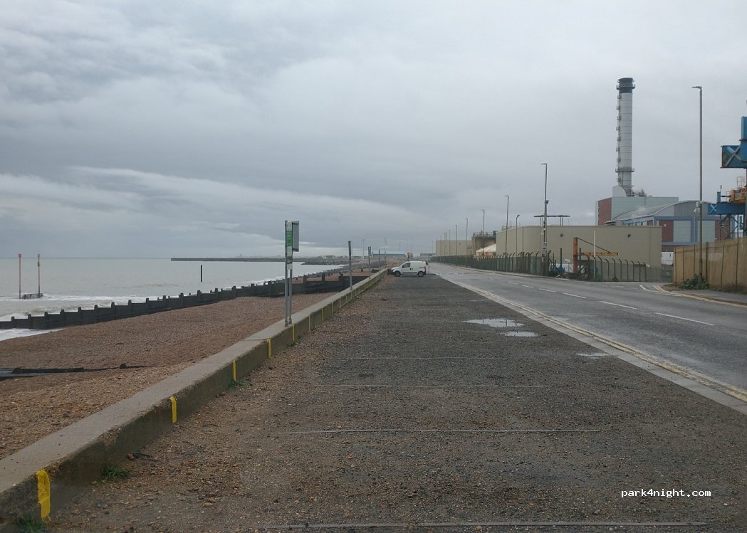 Guter Ausgangspunkt, um mit dem Rad nach Brighton zu fahren. Wir passten mit unserem 6m Camper „gerade so“ in die Parklücke. Abends waren bis 21:30h Autoposer unterwegs, morgens ab 5:30h LKWs. Dazwischen war es sehr ruhig. In der Nachten waren wir die einzigen Camper. Direkter Zugang zum sehr sauberen Kieselstrand.