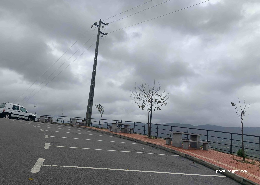 Clean and beautiful car park with stone tables and superb views over the valley.